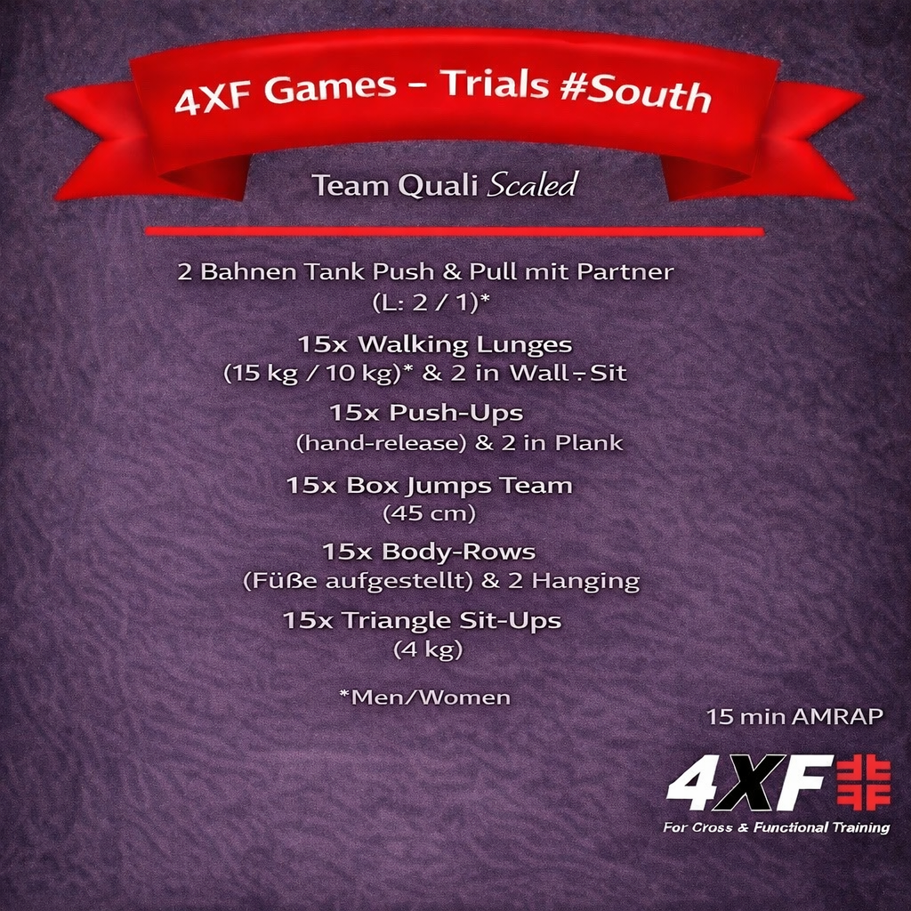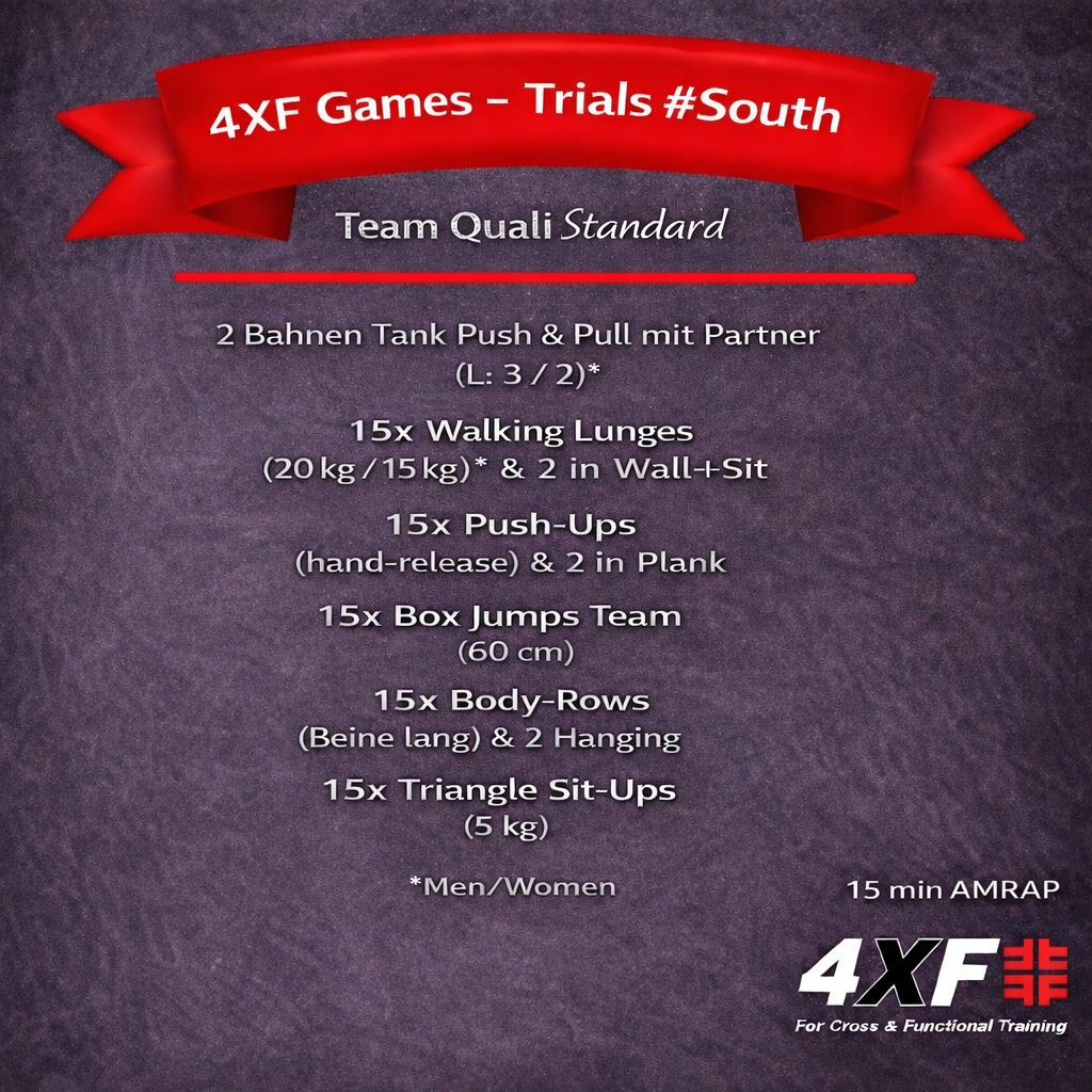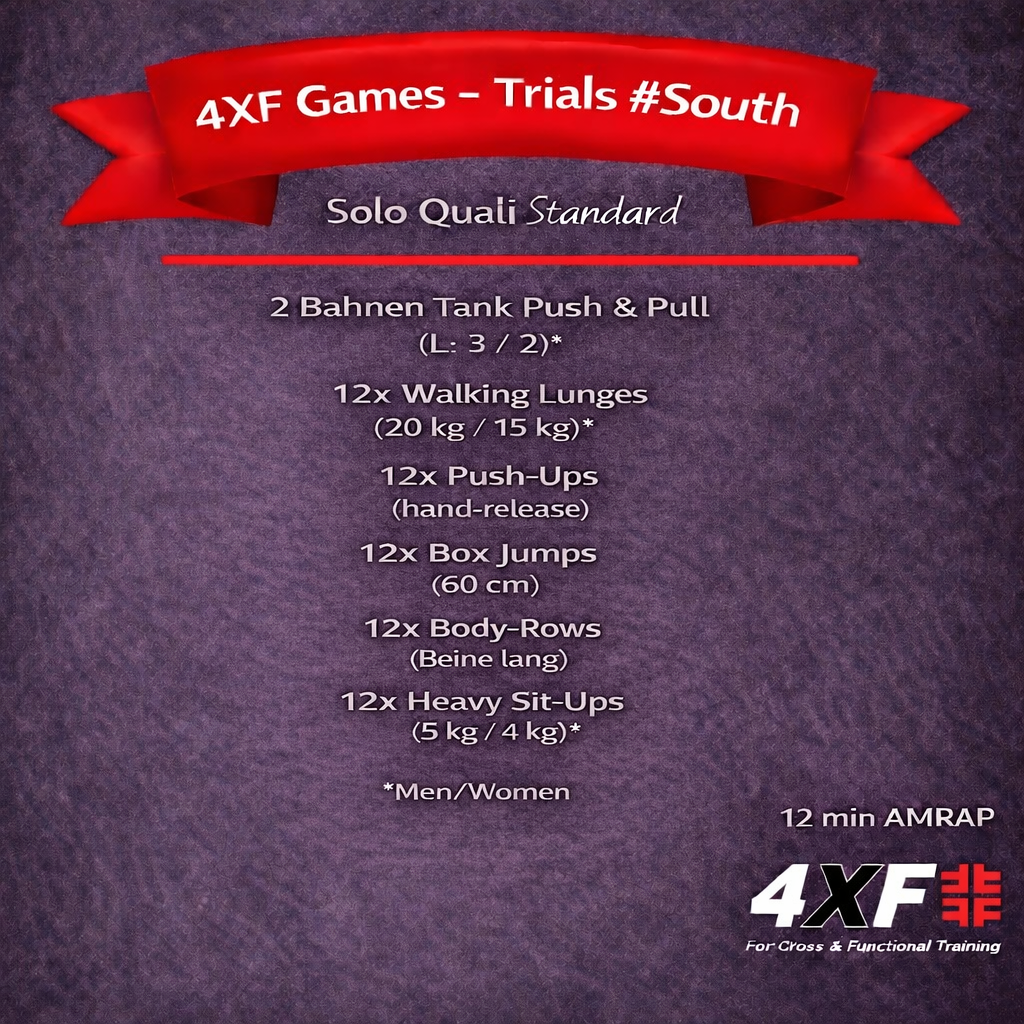 Das Herzstück der 4XF Games ist das Workout of the Day (WOD). Dieses wird aus einem festen Pool an funktionellen Übungen zusammengestellt. In der Basic-Kategorie (Einsteiger) erfahren die Teilnehmenden eines ihrer Workouts bereits im Voraus und können sich gezielt vorbereiten. In der Performance-Klasse (Fortgeschrittene) bleibt es spannend – hier werden die Workouts erst am Wettkampftag bekanntgegeben.
